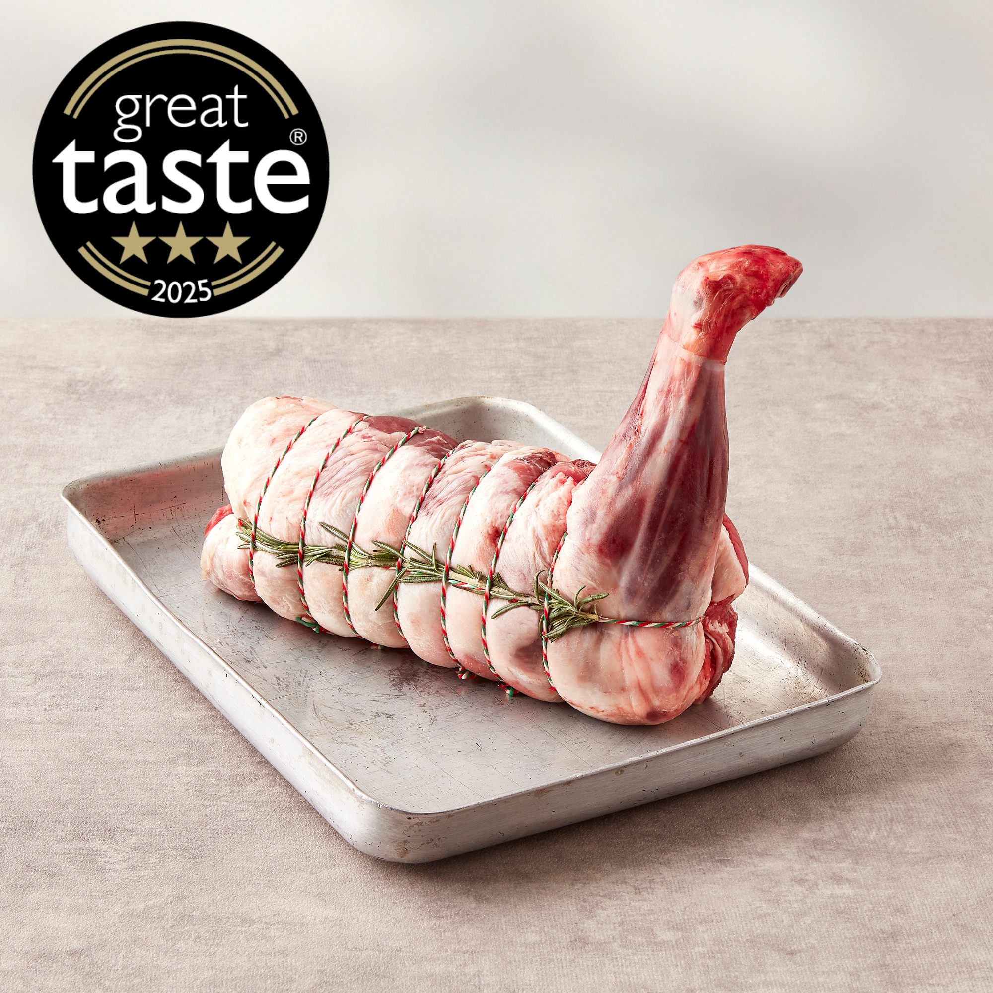 "A neatly prepared and boned joint, this has a good ratio of meat to fat. It is very tender! The fat is so creamy and literally melts in the mouth and there is a real herby tone to the flavour. There is fabulous depth and the meat is also very clean tasting. You really get the sense of where the lamb grazed. Clearly a very happy flock!"