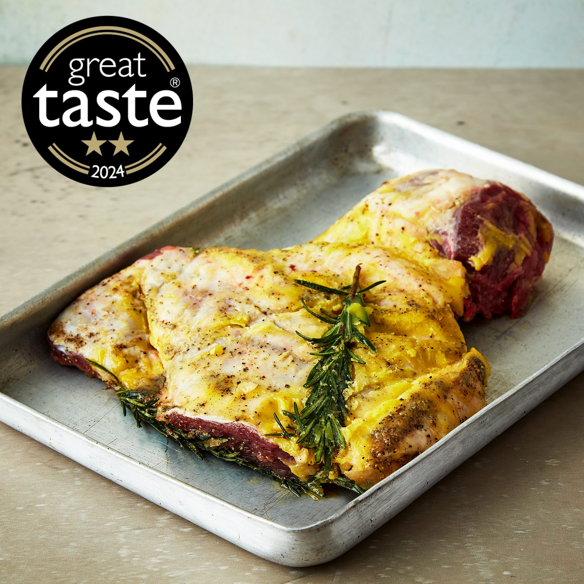 A popular cut, our butterflied leg of lamb is marinated with garlic and rosemary and ready for the barbecue or roasting in the oven.
